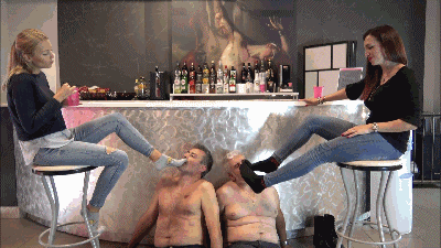 Goddesses Gabriella and Scarlet were having fun at the club. They were drinking, dancing, and enjoying themselves. A man approached them and told them that he had fallen in love with them and that he needed to be with them. They tried to shoo him off, but he was adamant and even knelt to beg them. His friend also joined him in begging them. They got very angry and decided to punish them. They took him, together with his friend, back to their house, where they instructed them to worship their feet. The men kissed their socks before sucking on their feet.